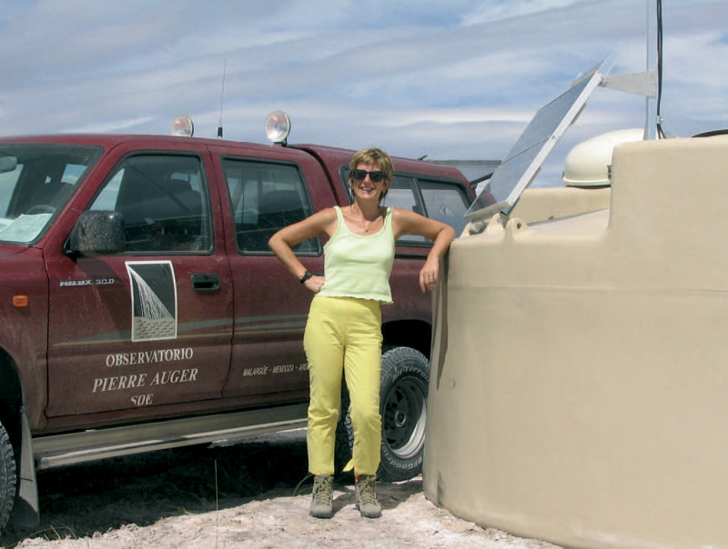 Piera Ghia con la jeep dell’Osservatorio di raggi cosmici Pierre Auger.