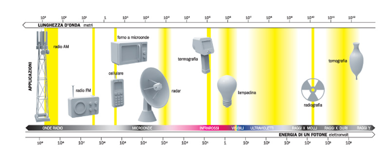 Lo spettro elettromagnetico. A ciascuna lunghezza d'onda corrisponde un'applicazione nella vita quotidiana.