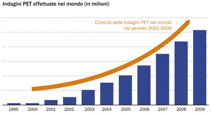 L’impiego dei positroni nelle indagini cerebrali fu proposto per la prima volta nel 1951. Il primo prototipo per la Pet era costituito da due semplici rivelatori in gradodi ruotare attorno alla testa del paziente;fu costruito nel 1953 da G.L. Brownell e W.H. Sweet a Boston, circa 20 anniprima dell’invenzione della tecnica che ha rivoluzionato la radiologia diagnostica, la Tac. A partire dagli anni '80, grazie allo sviluppo delle metodologie di ricostruzione delle immagini tomografiche e la diffusione degli acceleratori per la produzione dei radioisotopi necessari, la Pet è divenuta una tecnica diagnostica molto sofisticata. Dapprima impiegata solo in centri di alta tecnologia, è oggi un metodo di indagine indispensabile e largamente utilizzato in oncologia. Il grande successo è dovuto alle alte potenzialità di questa tecnica nell’identificazione dei tumori e delle metastasi all’interno del corpo umano, mediante il radiotracciante 18F-FDG (18F-FluoroDesossiGlucosio).