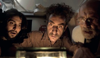 b.Un’altra scena del film, in cui il regista e il co-sceneggiatore, Nicholas Di Valerio, ammirano una camera a nebbia costruita dall’amico Cristiano “Capoccia” D’Innocenti, astronomo dilettante.