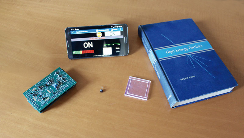 Assemblare a scuola o a casa un vero rivelatore di particelle con tanto di sistema di acquisizione, come quelli funzionanti in questi giorni al Cern di Ginevra, può diventare un gioco da ragazzi. Questo grazie alla scheda Arduino Shield “Ardusipm”, sviluppata per esigenze sperimentali reali nella sezione di Roma dell’Infn, e al suo software. Con materiali reperibili in rete è possibile costruire un rivelatore di particelle con annessa elettronica e sistema di acquisizione dati, che nulla ha da invidiare ai suoi fratelli maggiori funzionanti in Lhc (vd. in Asimmetrie n. 8 p. 24, ndr). Il progetto proposto può essere realizzato usando un Arduino Due, una piattaforma elettronica open-source pensata per chiunque voglia sviluppare progetti interattivi. Sono necessari soltanto altri tre componenti: un Ardusipm, un fotomoltiplicatore e uno scintillatore. I dati raccolti da uno o più rivelatori potranno essere condivisi tramite wi-fi su una piattaforma social visibile su internet o visualizzati da uno smartphone, un tablet o un Pc. Vediamo in dettaglio di che cosa si tratta. Uno dei compiti principali dei rivelatori di particelle è registrare il passaggio di particelle, come elettroni, muoni, fotoni ecc. Tra i sistemi di rivelazione possibili è stato scelto quello che utilizza la proprietà di alcuni materiali di scintillare, ossia di emettere deboli quantità di luce quando vengono attraversati dalle particelle. La luce emessa viene convertita in segnale elettrico tramite un fotomoltiplicatore. I fotomoltiplicatori, ancora in uso, sono oggetti costosi costituiti da un tubo di vetro fragile e ingombrante e che per funzionare hanno bisogno di tensioni di qualche migliaio di Volt. Grazie all’evoluzione tecnologica alla fine degli anni ’90 sono stati sviluppati dei fotomoltiplicatori a stato solido, chiamati Sipm (Silicon Photo Multiplier), molto più piccoli dei loro progenitori (appena qualche millimetro), che funzionano con tensioni di poche decine di Volt e che costano qualche decina di euro (a confronto delle migliaia di euro di quelli tradizionali). L’esperimento che vi proponiamo è di accoppiare un Sipm a uno scintillatore, e “osservare” la luce prodotta al passaggio dei raggi cosmici, particelle cariche – principalmente muoni – che raggiungono continuamente la Terra. Niente vieta, utilizzando scintillatori opportuni, di rivelare altre particelle come fotoni gamma o neutroni prodotti dalla radioattività ambientale o artificiale, trasformando il sistema in un rivelatore di radiazioni nucleari. In sintesi, il sistema sopra descritto consente di avere uno strumento compatto, non fragile, con bassi consumi e che non necessita di un computer sempre acceso per funzionare. La struttura proposta replica in piccola scala tutte le componenti degli “esperimenti veri”. [Valerio Bocci]