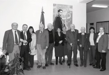 b.I partecipanti alla tavola rotonda “Bruno Touschek, l’uomo e lo scienziato” al Liceo Scientifico Bruno Touschek di Grottaferrata. Da sinistra: Mario Greco, Mario Calvetti, Signora Calvetti, Nicola Cabibbo, Carlo Bernardini, Adelina Cardillo (Preside del Liceo), Signora Bernardini, Giorgio Salvini, Signora Salvini, Tullia Gaddi (insegnate del Liceo), Giulia Pancheri.