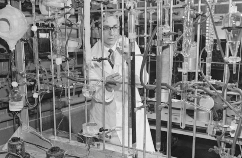 b.In un pionieristico esperimento condotto nel 1952 Stanley Miller (nella foto) dimostrò che sotto l’azione di scariche elettriche i composti presenti nell’atmosfera primordiale della Terra potevano interagire con l’acqua producendo molecole organiche (amminoacidi).