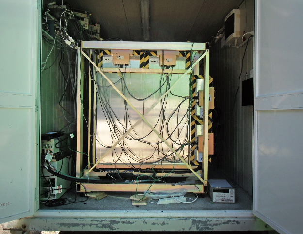 a.Lo strumento con cui nell’aprile 2013 è stata fatta una presa dati dimostrativa sul Vesuvio, il prototipo Mu-Ray sviluppato dall’Infn. Il rivelatore di muoni è formato da 384 scintillatori plastici letti da fotomoltiplicatori al silicio. Il consumo dell’intero apparato è sufficientemente basso da funzionare senza essere connesso alla rete elettrica. All’interno del progetto premiale Infn-Ingv Muraves entro il 2017 è prevista l’installazione sul Vesuvio di tre rivelatori con quattro piani traccianti da 1 m2 ciascuno. I nuovi rivelatori sono una versione migliorata del prototipo Mu-Ray.