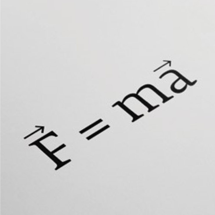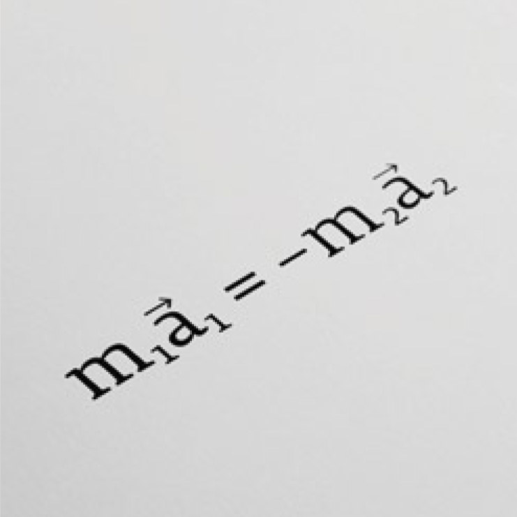 Nel 1687, esponendo nei Principi Matematici di Filosofia Naturale i fondamenti di quella che in seguito sarà chiamata Meccanica Classica, Newton attribuisce alla materia – di cui postula l’esistenza – la proprietà di possedere una forza d’inerzia interna in grado di resistere a qualsiasi azione tenti di cambiarne lo stato di quiete o moto rettilineo uniforme. Ne discende la seguente definizione: la massa m è la misura della capacità di un corpo di opporsi alle variazioni di velocità e dà conto della sua inerzia. Per questa ragione la m che compare nella seconda legge del moto (fig. b) è chiamata massa inerziale ed è misurata per confronto con una massa di riferimento nota, attraverso la legge di azione e reazione (fig. c).