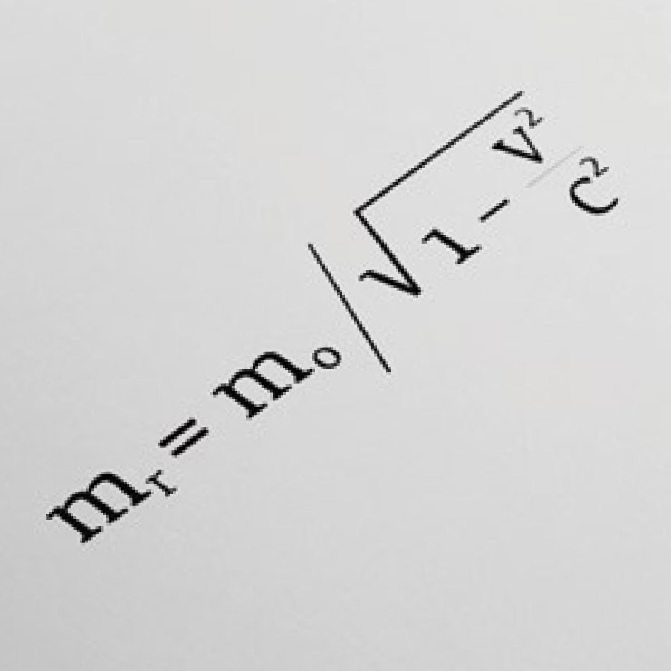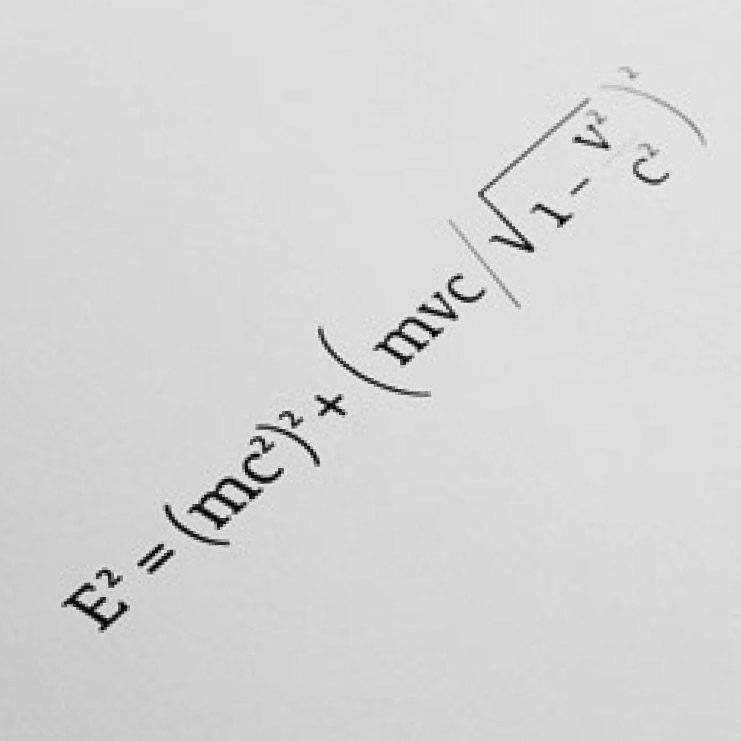 f. Relazione tra l’energia totale e la quantità di moto relativistica di un corpo di massa m in moto a velocità v nella teoria della relatività speciale. c è la velocità della luce nel vuoto.