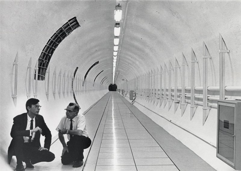 William Fairbank (a destra) che, come professore alla Stanford University, ideò e realizzò l’esperimento per la rivelazione dei quark liberi. Fairbank si è dedicato per oltre trent’anni a delicati esperimenti sulla superconduttività alle basse temperature.