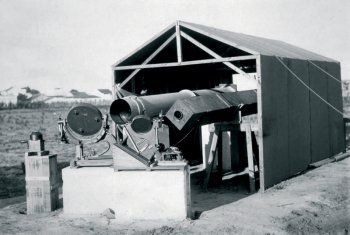 La strumentazione utilizzata da Crommelin per osservare l’eclisse a Sobral, in Brasile.