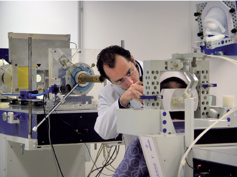 La precisione è la parola chiave per parlare di un’applicazione nata dalla fisica delle particelle e oggi impiegata in tutto il mondo per trattare i tumori localizzati non operabili o pediatrici. Si tratta dell’ “adroterapia”, una terapia in cui si usano particelle di alta energia prodotte con acceleratori di particelle dedicati in parte o totalmente al trattamento dei pazienti oncologici. Accade nel centro Catana, che ha trattato circa 500 pazienti dal 2002 utilizzando il ciclotrone dei Laboratorio Nazionali del Sud (Lns) dell’Infn di Catania, nel Centro Nazionale di Adroterapia Oncologica (Cnao) di Pavia, il cui sincrotrone è stato realizzato dall’Infn sulla scia del progetto pionieristico promosso dalla Fondazione Tera (circa 1500 pazienti trattati dal 2011), e nel centro di protonterapia di Trento, di cui l’Infn è partner attraverso il Trento Institute for Fundamental Physics and Applications (Tifpa), dove sono stati trattati oltre 400 pazienti da ottobre 2014. Gli adroni (dal greco hadros, forte) sono particelle formate da quark, che quindi subiscono la forza nucleare forte. Nelle attuali terapie si usano due tipi di adroni: i protoni e gli ioni carbonio. Diversamente dagli elettroni e dai fotoni, impiegati nella radioterapia, l’utilizzo degli adroni ha il vantaggio di poter rilasciare l’energia delle particelle in modo molto più preciso. La precisione è dovuta al fatto che gli ioni leggeri e i protoni possono penetrare attraverso i tessuti fino alla profondità desiderata, definita in base al loro numero atomico, massa ed energia iniziale, rilasciando poca energia durante il tragitto e concentrandone il rilascio a fine percorso, in una piccola regione - dell’ordine del mm - chiamata dai fisici “picco di Bragg” (vd. Frammenti nucleari, ndr). Queste particelle possono così colpire quasi solo le cellule malate, minimizzando i danni nel tessuto sano. L’azione delle particelle sulle cellule tumorali provoca la rottura della doppia elica nella struttura del Dna e porta alla morte delle cellule cancerose. Proprio come negli acceleratori costruiti per gli esperimenti di fisica fondamentale, il processo di accelerazione inizia all’interno di speciali camere, chiamate “sorgenti”, in cui si generano plasmi di elettroni e ioni. Gli ioni sono pre-accelerati, estratti e iniettati nelle macchine acceleratrici. Qui, grazie a campi elettrici e magnetici controllati da radiofrequenze, gli ioni vengono accelerati ad alte energie e raggruppati in pacchetti composti ognuno da miliardi di particelle. Nel sincrotrone del Cnao, ad esempio, in partenza i pacchetti viaggiano a poche migliaia di km al secondo, ma nella fase di massima energia - 250 MeV per i protoni e 400 MeV per nucleone per gli ioni carbonio - raggiungono velocità di circa 100.000 km al secondo. I fasci accelerati vengono poi inviati nelle sale di trattamento. Nel centro di Pavia ce ne sono tre, dove un magnete curva il fascio dirigendolo sul bersaglio, le cellule tumorali del paziente, con una precisione di 200 micron (due decimi di millimetro). Questa precisione è garantita da un monitoraggio continuo, a tre dimensioni, del paziente, per seguire i movimenti del corpo che possono alterare la posizione del tumore (come ad esempio il respiro). Il centro di Trento ospita un ciclotrone commerciale capace di produrre fasci di protoni con energie da 70 a 228 MeV, utilizzati per la cura di vari tipi di tumori. Durante il trattamento, il paziente è posizionato su un lettino all’interno di una “gantry”, una camera che permette di indirizzare le radiazioni ruotando a 360° attorno al paziente. Nella gantry è possibile evitare accuratamente gli organi a rischio, e per questo motivo il centro di Trento tratta molti pazienti pediatrici (circa il 30% del totale), per i quali gli effetti collaterali a lungo termine sono ovviamente una grande preoccupazione. “Il Tifpa si occupa della ricerca presso il centro di protonterapia, utilizzando una sala dedicata con due linee fisse, che si aggiunge alle due sale di trattamento con i gantry”, commenta Marco Durante, direttore del Tifpa. “La sala sperimentale è una user-facility e nel 2017 ha ospitato ben 20 esperimenti diversi: dalla fisica medica, alla radiobiologia, ai test di materiali di schermatura e della microelettronica nello spazio”, conclude Durante. Catana, invece, è specializzato nella cura dei tumori dell’occhio utilizzando fasci di protoni accelerati a 62 MeV dal ciclotrone superconduttore dei Lns. In questa linea le particelle vengono trasportate in aria attraverso un sistema passivo e vengono impiegate precise e avanzate tecniche dosimetriche per la calibrazione di fasci in termini di dose assoluta. “Catana ha rappresentato la prima esperienza clinica di protonterapia in Italia dimostrando la capacità di aggregare competenze interdisciplinari nel campo della medicina, fisica e biologia, mettendo l’energia dei nuclei a disposizione per la salute umana”, commenta Giacomo Cuttone, direttore dei Lns.