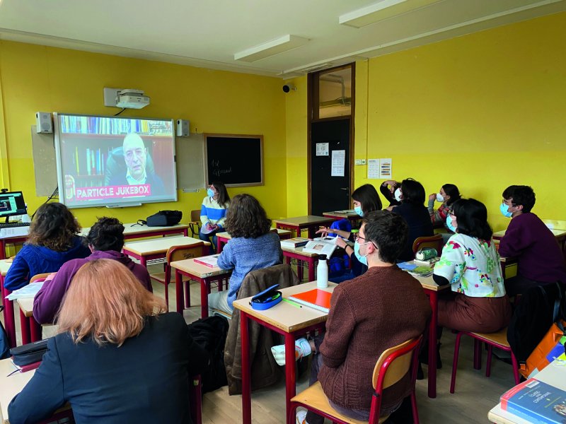 b. La classe 3°D del Liceo classico V. Alfieri di Torino durante la diretta su YouTube “Particle Jukebox - Fisica e medicina, dai raggi X all’adroterapia”, organizzata dall’Infn.