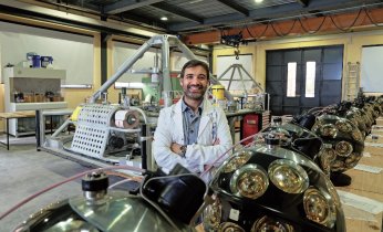 a.Salvo Viola nei Laboratori Nazionali del Sud (Lns) nel porto di Catania. Sulla sua sinistra i fotomoltiplicatori di Km3net e alle sue spalle l’osservatorio Sn1.