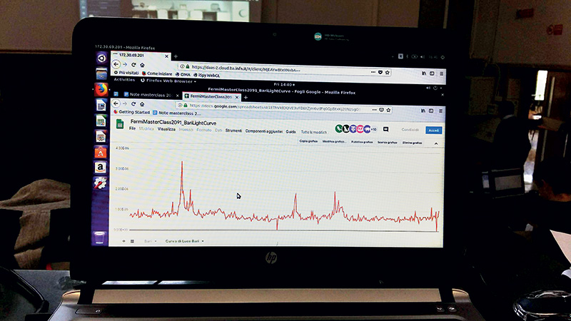 Il giorno 5 aprile 2019 noi studenti del Liceo Scientifico “A. Scacchi” di Bari abbiamo avuto la possibilità di partecipare a un’esperienza unica nel suo genere: la Fermi Masterclass, organizzata dall’Infn e tenutasi presso la locale sezione di Bari, al Dipar timento Interateneo di Fisica “M. Merlin”. Per noi studenti, una “full immersion” nel mondo della fisica astroparticellare. Il satellite Fermi, in orbita dall’11 giugno 2008, ospita un particolare rivelatore, il Lat (Large Area Telescope), che è studiato per essere sensibile alle frequenze più alte, i raggi gamma, dello spettro elettromagnetico. Il Lat è basato su una tecnologia di tracciatori a microstrip di silicio. L’emissione di raggi gamma è associata a fenomeni o sorgenti che coinvolgono energie elevatissime. Paradossalmente, alcune di queste sorgenti non potrebbero essere visibili con un telescopio convenzionale perché, soprattutto nella direzione del piano galattico, la materia stellare stessa assorbe molta radiazione visibile. La spettroscopia gamma rientra, perciò, in un progetto più ampio, denominato astronomia multimessaggera, che coinvolge simultaneamente tutta la banda di frequenze dello spettro elettromagnetico, compresi i raggi X, l’ultravioletto, l’infrarosso e le onde radio. Durante la mattinata abbiamo seguito lezioni sul funzionamento del Lat, abbiamo scoperto che cosa è un Agn (nucleo galattico attivo), in particolare abbiamo studiato i blazar, e per finire abbiamo consolidato le conoscenze attraverso un istruttivo e divertente quiz a risposta multipla sulla app Kahoot. Nella seconda parte della giornata siamo entrati nel vivo dell’esperienza analizzando un set di dati raccolti dal Lat. Il nostro obiettivo era quello di ricostruire, attraverso un opportuno software, la “curva di luce” del blazar denominato PKS1830-211 (coordinate equatoriali celesti: ascensione retta = 278,41°; declinazione = -21,06°). A tal fine siamo stati suddivisi in 20 postazioni e a ciascun gruppo è stato assegnato un intervallo di tempo di 6 mesi per ricoprire i 10 anni di attività dell’esperimento Fermi. Un doveroso ringraziamento va ai docenti e ricercatori che ci hanno supportato, grazie ai quali siamo stati in grado di utilizzare la software suite necessaria per eseguire l’analisi. Infine, i dati relativi ai diversi intervalli temporali sono stati inseriti in un unico grafico, che ci ha permesso di studiare la variazione della luminosità della nostra sorgente di raggi gamma in funzione del tempo. Dall’osservazione della curva ottenuta, abbiamo potuto rilevare la presenza di picchi che segnalavano un aumento di radiazione gamma emessa dalla sorgente presa in esame. I risultati sono stati poi confrontati con quelli ottenuti da altri studenti, contemporaneamente, in altri centri di ricerca in Italia e in Slovenia, i quali hanno effettuato uno studio simile in intervalli di tempo diversi e su altre sorgenti. La giornata si è conclusa con il collegamento in videoconferenza con un ricercatore della Nasa, dimostratosi subito disponibile ad assecondare ogni nostra curiosità con ricche ed esaudienti risposte. Ogni sua parola è stata in grado di trasmetterci quella stessa fervida passione che gli ha consentito di realizzare il suo sogno, superando insidie e ostacoli. Insomma, sebbene l’infinità dell’universo, i suoi innumerevoli misteri e i segreti da esso racchiusi possano violare la nostra sicurezza conoscitiva, incutendo timore e alimentando la nostra rinuncia a svelarli, l’essere umano tenterà sempre di varcare tali limiti, riuscendo a seguire quella sola traccia capace di cambiare tutto, di stravolgere i precedenti schemi, offrendo l’accesso verso nuove possibilità che accompagnino l’uomo nella scoperta di se stesso e del mondo che lo circonda.