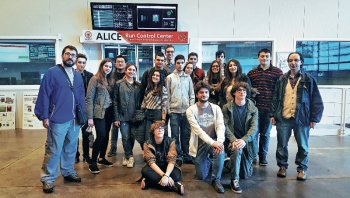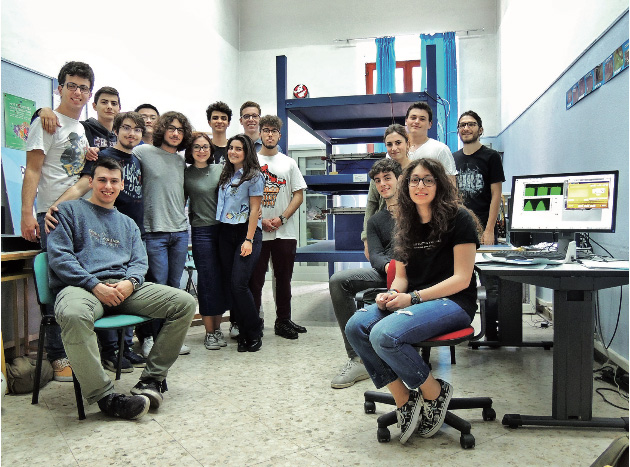 a.Il gruppo degli studenti del quinto anno nel laboratorio di raggi cosmici del Liceo “A. Scacchi” di Bari. Sullo sfondo il rivelatore EEE.