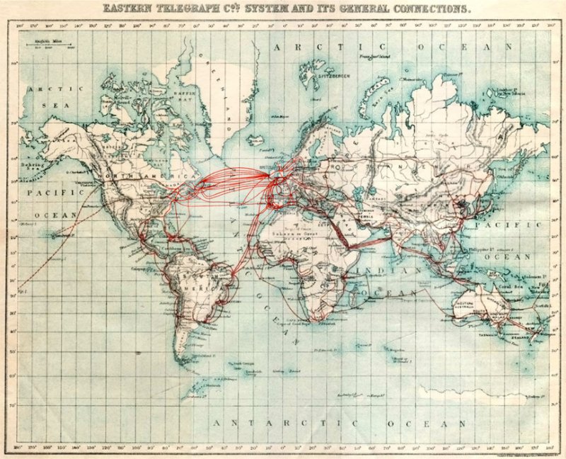 La storia delle comunicazioni intercontinentali è antica e avventurosa (vedi http://atlantic-cable.com/). Il primo cavo tra Inghilterra e Stati Uniti d’America fu steso nel 1858. La nave da guerra britannica Hms Agamemnon e l’americana Uss Niagara si incontrarono in pieno Atlantico, dove vennero faticosamente connesse le due metà del cavo transatlantico che ciascuna aveva a bordo (oltre 3000 km di cavo in totale); ciò fatto, le due navi si allontanarono depositando via via il cavo sottomarino sul fondo dell’oceano, fino a raggiungere rispettivamente l’Irlanda a est e l’isola di Terranova a ovest. Seguirono festeggiamenti trionfali e il 16 agosto 1858 lungo questo cavo transitò la prima “email” transoceanica della storia tra due capi di stato: la Regina Vittoria inviò (o per meglio dire, “fece inviare”!) un telegramma di congratulazione al Presidente degli Stati Uniti James Buchanan. Il messaggio, meno di cento parole, circa 500 byte, ci mise ben 17 ore e 40 minuti per arrivare a destinazione! Oggi, da Buckingham Palace alla Casa Bianca, il messaggio avrebbe avuto una durata dell’ordine dei microsecondi, e sarebbe arrivato a destinazione dopo qualche decina di millisecondi, l’inevitabile tempo di percorrenza dei segnali nelle fibre ottiche, a velocità appena inferiore a quella della luce. Purtroppo la storia del primo cavo transoceanico non ebbe lieto fine. Infatti, il segnale Morse era debole e, per correre ai ripari, aumentarono la tensione elettrica di alimentazione: scelta infelice, qualcosa si ruppe e il cavo cessò di funzionare per sempre, dopo appena tre settimane!