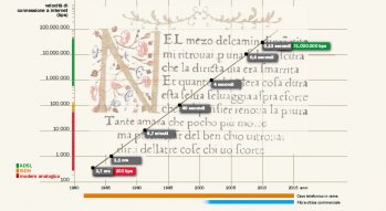 1. Evoluzione negli anni della velocità massima di connessione internet (in bit al secondo, bps) da un’utenza domestica. Sono indicati i tempi necessari per inviare, via email, l’intera Divina Commedia, dalla tecnologia del 1985 fino a quella odierna.