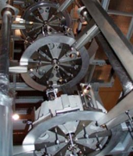 Si forma così, a poco a poco, nell’officina meccanica lucchese quella mentalità flessibile e pronta ad aggiornare continuamente le proprie tecniche, che sposa in maniera perfetta le esigenze della ricerca scientifica. Ed è grazie a questa che il progetto dei grandi superattenuatori di Virgo arriva a Lucca. “Questi assomigliano a dei grandi ammortizzatori a cui sono sospesi gli specchi dell’interferometro per isolarli dalle vibrazioni sismiche – ci spiega Franco Frasconi, ricercatore della sezione Infn di Pisa. Il loro principio di funzionamento si basa sulla capacità intrinseca di smorzamento delle vibrazioni da parte di sei pendoli posti in cascata. Il sistema realizzato, però, è molto più complesso, perché oltre ad avere queste caratteristiche passive in tutti i gradi di libertà (rotazioni incluse), è stato corredato di sensori e attenuatori in grado di correggere, attraverso un controllo attivo, la posizione degli specchi fino a frazioni di nanometri (frazioni di un miliardesimo di metro)”.