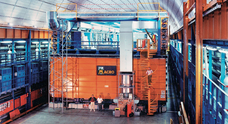 b.L’esperimento Macro nei Laboratori Nazionali del Gran Sasso dell’Infn, dove Ioannis ha lavorato alla fine degli anni ’90.