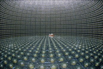L’osservatorio per neutrini Super-Kamiokande in Giappone contiene 50.000 tonnellate di acqua che vengono osservate da oltre 10 mila fotomoltiplicatori. L’interazione di un neutrino con gli elettroni o i nuclei dell’acqua può produrre una particella carica che, muovendosi nell’acqua a una velocità superiore a quella della luce nell’acqua stessa, produce un lampo di luce. Questo fenomeno, chiamato effetto Cherenkov, viene registrato dai fotomoltiplicatori, portando informazioni sul neutrino che lo ha prodotto.