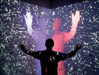 Cosa ci accadrebbe se potessimo rivivere i primissimi istanti di vita dell’universo, prima che il meccanismo di Higgs generasse le masse delle particelle come le conosciamo oggi? L’installazione interattiva Il dono della massa, presente a Genova al Festival della Scienza 2012, ha proposto ai visitatori uno sforzo di immaginazione, per vivere sulla propria pelle un’esperienza impossibile: tornare ai primissimi istanti dopo il Big Bang e passare dallo stato disordinato ad altissima temperatura dell’universo primordiale, caratterizzato da continue collisioni tra le particelle, a quello a più basse temperature che sopravvive ancora oggi, nel quale il campo di Higgs determina un nuovo ordine e genera le masse delle particelle elementari. Il dono della massa, ideata dall’Ufficio Comunicazione dell’Infn e realizzata in collaborazione con Embrio.net e Paolo Scoppola, è un’installazione interattiva sul meccanismo di Higgs. Il pubblico, immerso in una scenografia interattiva e multimediale, è stato invitato a stimolare la propria immaginazione, tema dell’edizione 2012 del Festival della Scienza, per vivere l’esperienza virtuale di perdere e acquisire la propria massa. I visitatori si vedevano proiettati sulle pareti come in una sorta di specchio. All’inizio ognuno di loro appariva informe, circondato dal continuo movimento dell’universo primordiale. Immergendosi progressivamente nell’installazione, il corpo iniziava a prendere consistenza e forma, esperienza che invitava il pubblico a riflettere sul famoso bosone di Higgs e sul significato fisico della massa. Che cos’è la massa? era anche la domanda principale della mostra che precedeva l’exhibit interattivo. Un allestimento labirintico di pannelli su cui si raccontavano trame parallele: l’ipotesi sviluppata da Peter Higgs sull’esistenza del bosone; la lunga caccia alla particella “dannata” portata avanti per decenni dai fisici di tutto il mondo; lo sviluppo tecnologico da record necessario alla costruzione degli acceleratori di particelle, in particolare Lhc; la passione con cui la comunità del Cern porta avanti le proprie ricerche. Negli undici giorni di Festival la mostra, allestita alla Loggia della Mercanzia, ha ricevuto la visita di un pubblico variegato: scolaresche di ogni età, da gruppi di prima elementare alle ultime classi dei licei, ma anche curiosi, visitatori di passaggio e persone interessate a conoscere qualcosa di più sulla recente scoperta. “Credo che dopo quest’esperienza seguirò con maggiore interesse l’evolversi delle ricerche al Cern,” racconta Silvia, una studentessa che ha visitato la mostra, che continua: “Prima avevo sentito parlare del bosone solo in maniera abbastanza confusa nei telegiornali. Dopo aver visitato la mostra, finalmente ne so qualcosa di più!”.