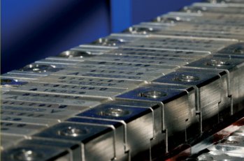 Espansioni polari dell'ondulatore magnetico di Sparc nei Laboratori Nazionali di Frascati dell'Infn: il periodo dell'ondulatore (cioè la distanza tra due poli nord successivi, individuabile come la distanza tra due viti contigue) è pari a 2,8 cm.