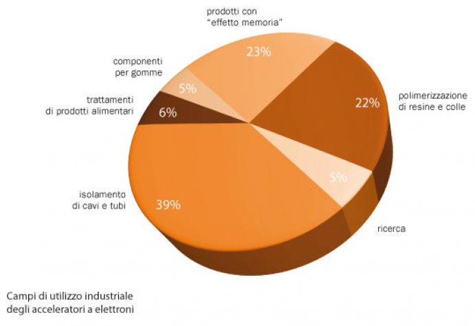 I processi chimici che avvengono all’interno di un polimero irradiato (per esempio il polietilene, che ha delle proprietà particolarmente adatte a questo tipo di trattamento) consistono in alterazioni delle catene molecolari in grado di amplificare o degradare la qualità e la quantità delle interconessioni di queste lunghe molecole responsabili delle caratteristiche macroscopiche del materiale. È una complessa alchimia, che richiede la definizione di molti aspetti: dalla scelta dei polimeri e dei loro additivi, a quella dell’ambiente di irraggiamento (temperatura, presenza o meno dell’aria), dal rateo di dose (cioè la quantità della dose nell’unità di tempo), alla quantità integrata di dose rilasciata al campione. L’ottimizzazione del processo di trattamento porta alla realizzazione di prodotti ad alto contenuto di innovazione che si possono ottenere solo con questa tecnologia. È il caso, per esempio, dei cavi resistenti alle alte temperature o dei materiali dotati di “effetto memoria”, che sono cioè in grado di modificare la loro forma a seconda della temperatura, ritornando poi alla forma originaria. Esiste anche un terzo campo di applicazione del trattamento con e-beam, che al momento è in fase di sviluppo in alcune parti del mondo, come gli Stati Uniti, la Russia, il Giappone, la Cina e la Germania: è il settore ambientale.