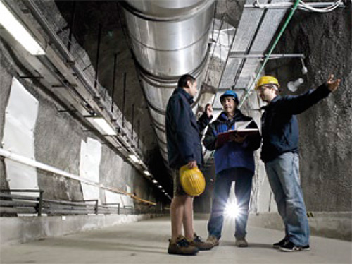 Una delle gallerie dei Laboratori Nazionali del Gran Sasso, il più grande laboratorio sotterraneo al mondo dedicato allo studio della fisica astroparticellare.