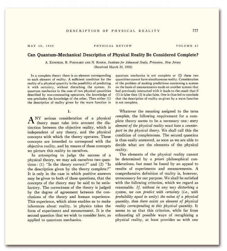L’articolo a firma di Einstein, Podolsky e Rosen, apparso sul numero 47 del Physical Review Letters il 15 maggio del 1935.