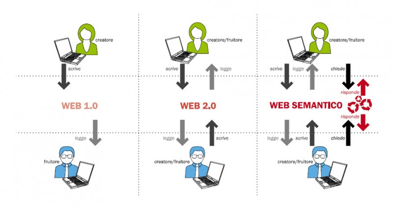 1. Evoluzione dal web 1.0 al web semantico. L’interazione con la rete e i motori di ricerca diventa sempre più “umana”. |