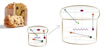 L’effetto dell’espansione dell’universo può essere interpretato immaginando un panettone in fase di lievitazione, i cui canditi rappresentano gli oggetti cosmici (dalle stelle agli ammassi di galassie). Mentre il panettone lievita, la distanza tra i canditi aumenta man mano che cresce il raggio: analogamente, tutti gli oggetti cosmici si allontaneranno uno dall’altro con il passare del tempo, e qualunque altra lunghezza, inclusa la lunghezza d’onda di un’onda elettromagnetica che viaggia per miliardi di anni, risulterà dilatata.