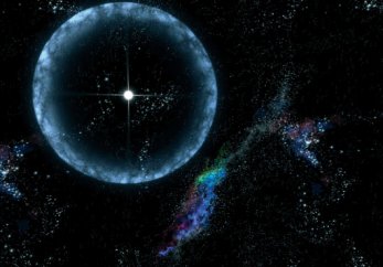 Rappresentazione artistica dell’esplosione di una supernova avvenuta nel dicembre 2004, con successiva formazione di una stella di neutroni, a 50.000 anni luce dalla Terra. Il bagliore emesso dalla stella fu così intenso che oscurò temporaneamente tutti i satelliti a raggi X e illuminò la parte alta dell’atmosfera terrestre.