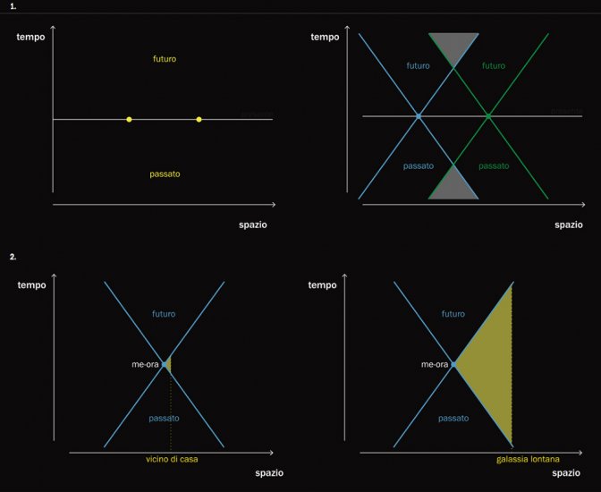 Negli ultimi dieci o quindici anni, le più selvagge e incredibili conseguenze di questa audace teoria di Einstein (riguardanti buchi neri, espansione dell’universo, onde gravitazionali, lenti gravitazionali, differenza di velocità del passaggio del tempo con l’altezza ecc.) sono state tutte direttamente o indirettamente verificate. Oggi, questa teoria rappresenta la più estesa forma di sapere fortemente credibile cha abbiamo sul tempo. Il tempo è il nome che diamo a una certa caratteristica quantitativa del campo gravitazionale, che a sua volta è una cosa simile al campo elettromagnetico.