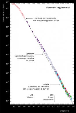 Chiarire la natura di questa misteriosa radiazione richiese più di venti anni. Oggi sappiamo che i raggi cosmici sono particelle di varia natura elettricamente cariche, o neutre come nel caso dei fotoni e dei neutrini, che arrivano continuamente sulla Terra da tutte le direzioni. I raggi cosmici hanno uno spettro di energia che si estende fino a valori straordinari, anche decine di milioni di volte più grandi di quanto si riesce a ottenere in macchine acceleratrici come il Large Hadron Collider (Lhc) del Cern di Ginevra.