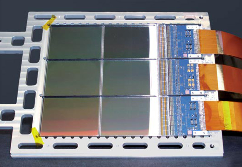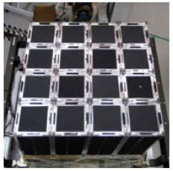 c. Le 16 torri del Lat (Large Array Telescope) di Glast. Ogni torre contiene un tracciatore e un calorimetro per la determinazione, rispettivamente, della direzione di arrivo e dell’energia del raggio gamma incidente.