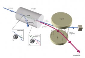 l’ausilio di magneti, i positroni vengono raccolti e guidati verso una