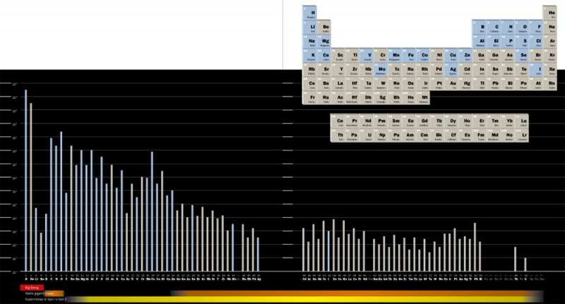 artificialmente in laboratorio. In basso, le abbondanze degli elementi