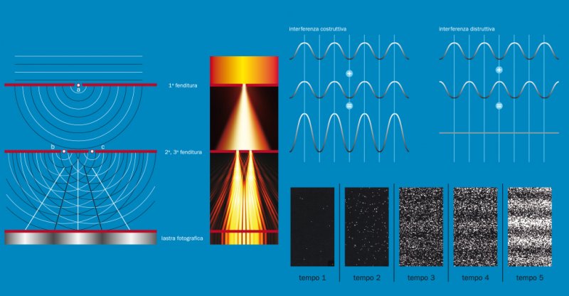 destra, le figure di interferenza ottenute da diffrazione con doppia