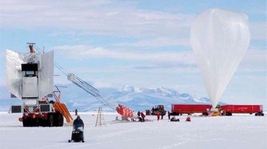 a. Lancio della navicella Boomerang dall’Antartide nel 2003. Misurando il fondo cosmico a microonde nel 1997, 1998 e 2003 questo esperimento ha permesso di stabilire le percentuali di materia “normale” e materia oscura presenti nell’Universo.