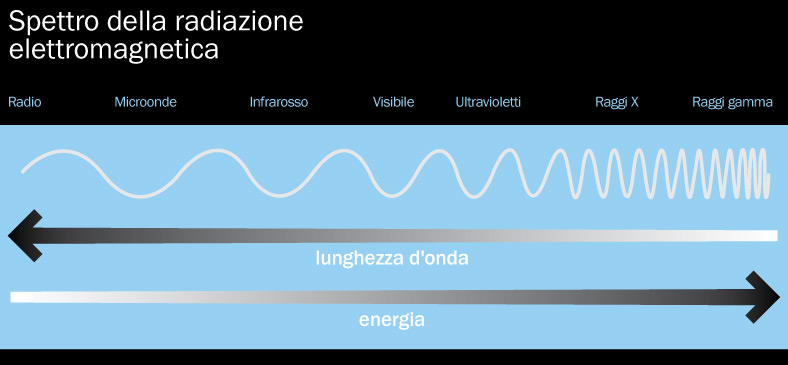 La radiazione elettromagnetica consiste di onde che possono essere interpretate come particelle dotate di energia: i fotoni. All'aumentare della lunghezza d'onda dei fotoni, la loro energia decresce. La luce per noi visibile è solo una piccola parte dello spettro della radiazione elettromagnetica.