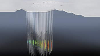 L’astronomia alle altissime energie è quindi accessibile solo ai neutrini, particelle affascinanti ed elusive. Talmente elusive che l’esperimento IceCube, con un volume di rivelazione di un chilometro cubo, cattura appena una decina di neutrini cosmici l’anno. La necessità di rivelatori di volumi di circa un chilometro cubo scaturisce da stime di flusso che sono state confermate dalle osservazioni. L’idea di utilizzare grandi volumi di mezzi naturali, come l’acqua marina o i ghiacci polari a grandi profondità, per rivelare i neutrini di alta energia è stata proposta negli anni ’60. Il neutrino, interagendo con l’acqua o il ghiaccio, produce un muone (o un altro leptone carico a seconda del sapore del neutrino) che si propaga a velocità maggiore della velocità della luce nel mezzo, generando un cono di luce direzionale per effetto Cherenkov. La luce Cherenkov viene rivelata da una matrice tridimensionale di sensori ottici (fotomoltiplicatori) che consentono di misurare l’energia del neutrino e di risalire alla sua direzione di provenienza e quindi di individuarne la sorgente. Il ghiaccio o l’acqua hanno una triplice funzione: fungono da bersaglio per l’interazione del neutrino, da radiatore Cherenkov e da schermo per i muoni atmosferici che provengono dall’alto e costituiscono la principale sorgente di rumore di fondo. Un paio di migliaia di metri di ghiaccio o acqua sovrastante il rivelatore riducono il flusso di muoni atmosferici di circa un milione di volte, facendo in modo che il rivelatore non ne sia accecato. I segnali di neutrini sono tuttavia talmente rari che nei telescopi si selezionano solo eventi di neutrini che provengono dall’emisfero opposto, utilizzando tutta la Terra, che può essere attraversata solo dai neutrini, come filtro. La rivelazione di segnali dall’emisfero opposto è necessaria per la identificazione dei neutrini muonici, che sono il canale privilegiato per l’astronomia. Per l’osservazione completa del cielo di neutrini sono necessari quindi due rivelatori di dimensione del chilometro cubo installati in emisferi opposti, in modo da assicurare una copertura totale. La realizzazione di telescopi per neutrini ad alta energia in ambienti estremamente ostili, come le profondità dei ghiacci polari o gli abissi marini, implica sfide tecnologiche considerevoli, a causa delle pressioni elevatissime e di problemi di corrosione e accessibilità.