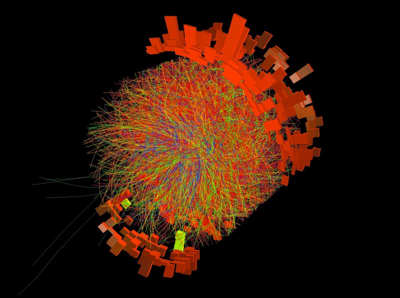 Non in tutte le collisioni però si scontrano tutti i nucleoni dei due nuclei interagenti, anzi sono più probabili le collisioni in cui solo alcuni collidono, ma le interazioni più interessanti sono quelle con molti nucleoni coinvolti, poiché la densità di energia e le temperature raggiunte sono maggiori. Quando la temperatura nella zona di interazione, in gergo chiamata “fireball”, diventa maggiore di 150 MeV, circa due migliaia di miliardi di gradi centigradi (100.000 volte quella del centro del Sole), neutroni e protoni si “sciolgono” nei loro costituenti elementari, quark e gluoni, che fluiscono liberi, come nell’universo primordiale. La fireball si raffredda molto rapidamente e quark e gluoni si ricombinano a formare la materia ordinaria, particelle e nuclei leggeri, che viene rivelata dagli apparati sperimentali. I rivelatori forniscono una fotografia di ogni collisione e studiando le proprietà delle particelle prodotte, come il loro contenuto in quark, la loro energia, le direzioni in cui vengono emesse, si estrapolano importanti informazioni sul plasma di quark e gluoni formatosi per pochissimi istanti dopo la collisione.
