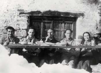 b.Da sinistra: Antonio Rostagni, Gleb Wataghin, Enrico Persico, Enrico Fermi, Matilde Rostagni. Gressoney, La Trinitè, dicembre 1932.
