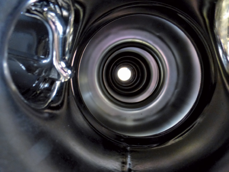 c.Sezione trasversale di una delle nove celle a base di niobio della cavità a radiofrequenza operante a 1,3 GHz costruita per l’International Linear Collider che entrerà in funzione in Giappone nei prossimi anni.
