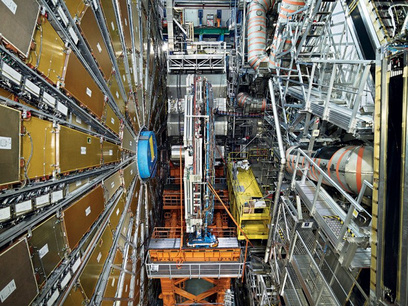 c. La spettacolare macchina di Cms, in preparazione per una nuova presa dati. La complessità della strumentazione è seconda solo a quella delle informazioni prodotte.