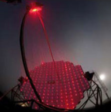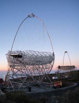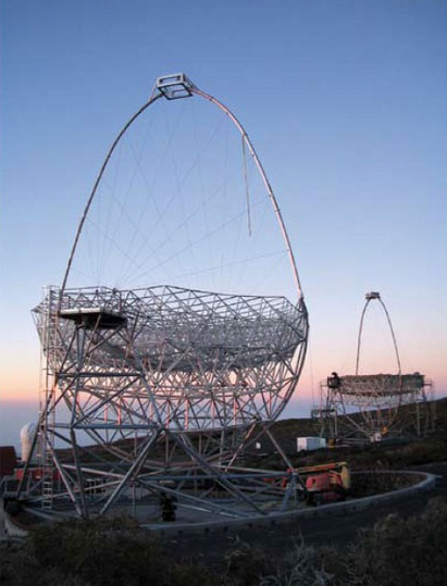 I telescopi gamma consentono anche una misura indipendente seppure indiretta della quantità di materia oscura, e anche dell’ancora più misteriosa “energia oscura” che controlla l’evoluzione dell’Universo governandone l’espansione. Questa misura si basa sul fatto che fotoni gamma provenienti da regioni lontanissime, come quelli che arrivano dai collassi gravitazionali nei nuclei delle galassie, viaggiano per centinaia di milioni di anni in uno spazio che si deforma. Questa deformazione, che si può misurare grazie alle caratteristiche della diffusione dei fotoni, è legata alla densità di materia e di energia dell’Universo. Quattro grandi rivelatori Cherenkov, dalla struttura molto simile, sono oggi al lavoro: oltre a Magic, nell’emisfero nord è operativo Veritas, che si trova in Arizona; mentre nell’emisfero sud, oltre a Hess, è attivo in Australia Cangaroo.