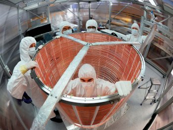 L’esperimento Xenon in fase di costruzione nei Laboratori del Gran Sasso. È uno dei rivelatori in cui i fisici sperano di “vedere” le Wimp, possibili particelle di materia oscura.