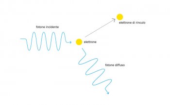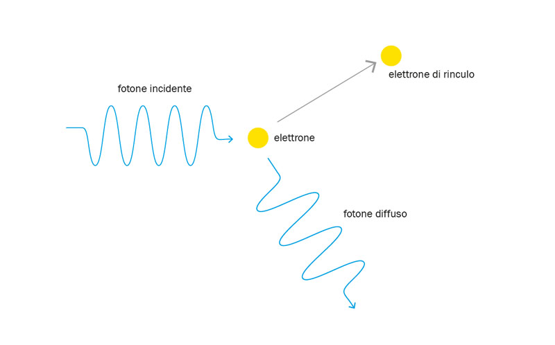 b.La diffusione Compton è dovuta agli urti elastici tra fotoni ed elettroni liberi. Per la conservazione dell’energia, i fotoni diffusi hanno una lunghezza d’onda maggiore di quella dei fotoni incidenti.