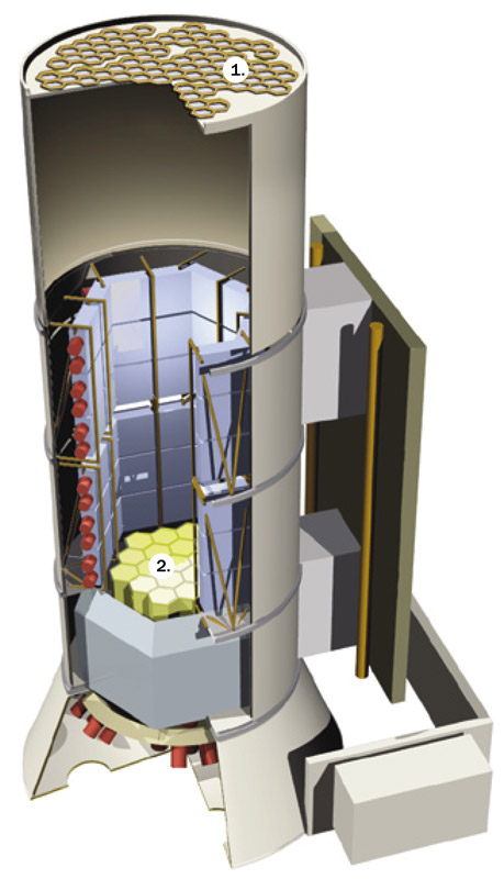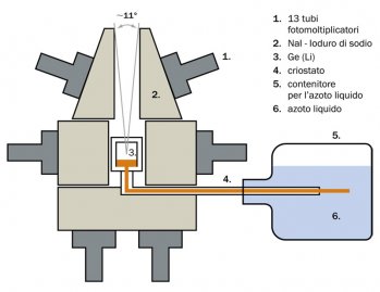 b. Trenta anni fa la scoperta dell’antimateria galattica in un esperimento condotto nel 1978 ai laboratori Bell. Un rivelatore di Germanio di 120 cm2 posto su un pallone stratosferico era raffreddato con azoto liquido e schermato con ioduro di sodio per impedire ai fotoni gamma di raggiungere il rivelatore. Un foro (collimatore) lasciava passare solo i fotoni entro un angolo di 11° dal centro galattico.