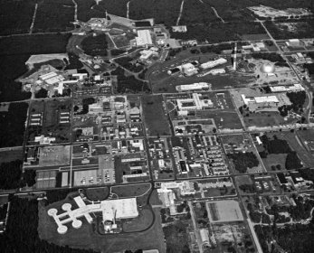 Vista aerea del Laboratorio di Brookhaven nel 1963 circa. Nella parte centrale superiore della foto è visibile l’Alternating Gradient Synchrotron (Ags).